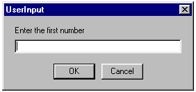 The user enters a number in the box and then presses the Enter key, or clicks the OK button. The value of the variable "number1" will then be equal to the first number entered.